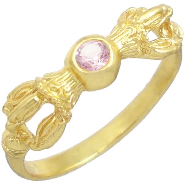災いを打ち破り幸運を引き寄せる法具をバースデーストーンと共に癖のないデザインにアレンジ。ホワイトとブラックに続きセラミックゴールドをコーティングした運気アップも期待できる?まばゆい黄金色が登場。