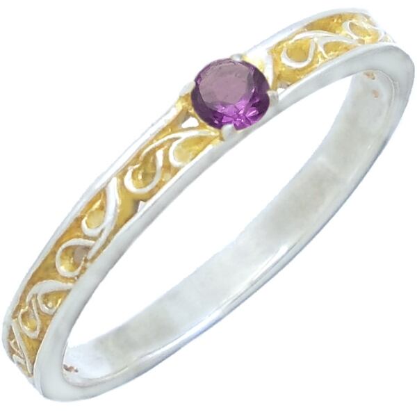 (2月)アメジスト ゴールドコート スクロール シルバー リング 誕生石*BR-1057