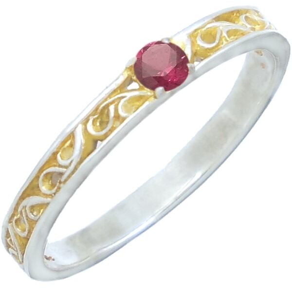 (7月)ルビー ゴールドコート スクロール シルバー リング 誕生石*BR-1057