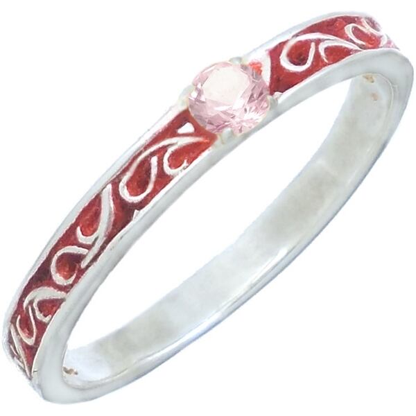 (10月)ピンクトルマリンレッドコート スクロール シルバー リング 誕生石*BR-1058