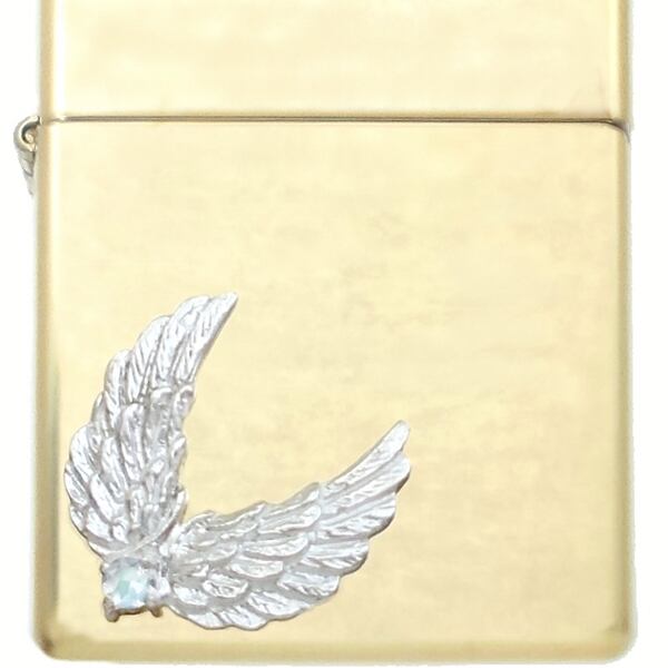 ★2枚の翼が開くウイングモチーフとバースデーストーンのブラスボディジッポ。