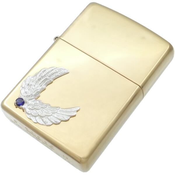 ★2枚の翼が開くウイングモチーフとバースデーストーンのブラスボディジッポ。