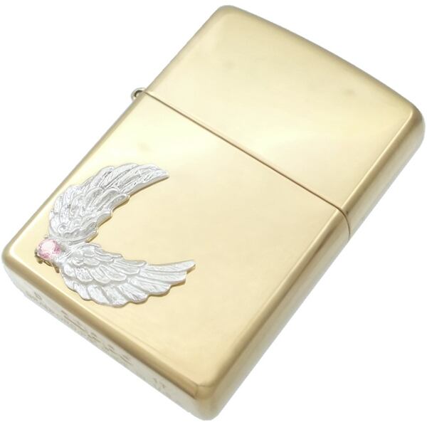 ★2枚の翼が開くウイングモチーフとバースデーストーンのブラスボディジッポ。
