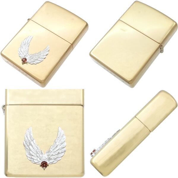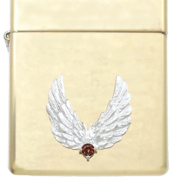 ★2枚の翼が開くウイングモチーフとバースデーストーンのブラスボディジッポ。