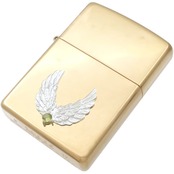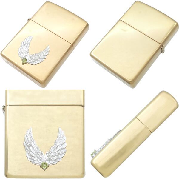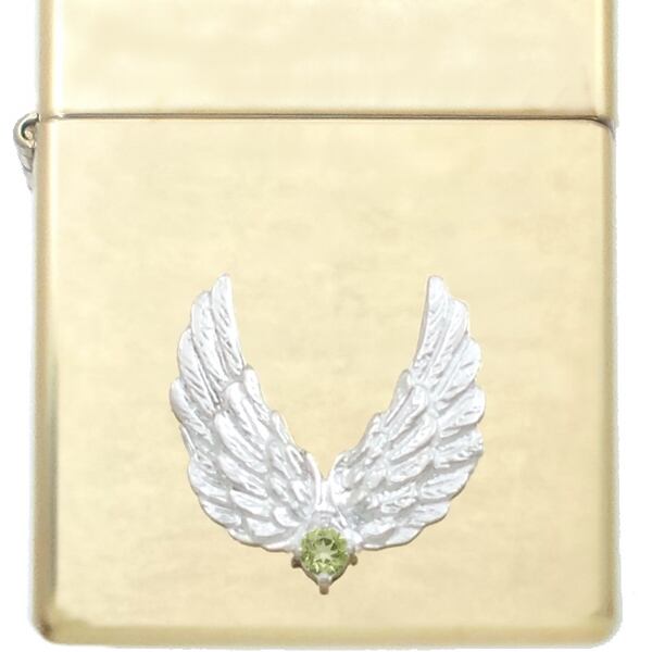 ★2枚の翼が開くウイングモチーフとバースデーストーンのブラスボディジッポ。