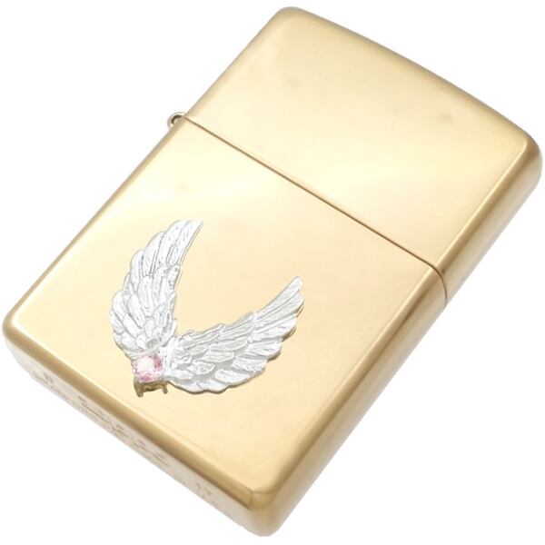 ★2枚の翼が開くウイングモチーフとバースデーストーンのブラスボディジッポ。