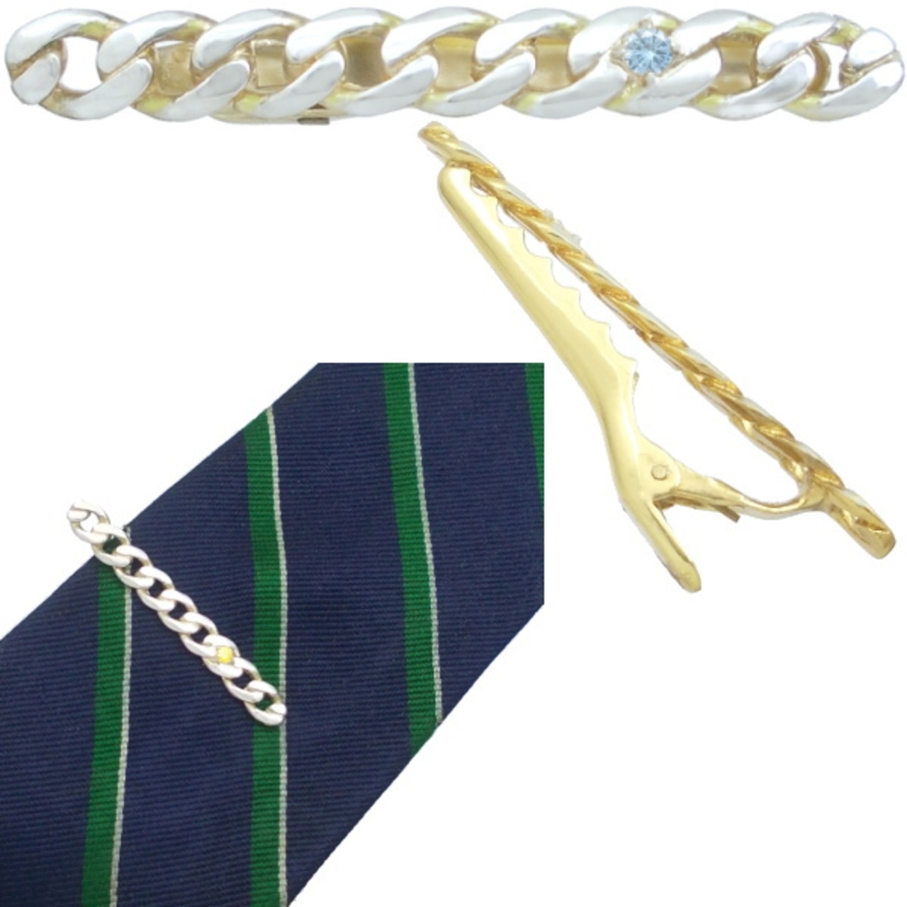★燻しの代わりに金の差し色、6面キヘイチェーンに誕生石をセッティングしたシンプルなネクタイピン。