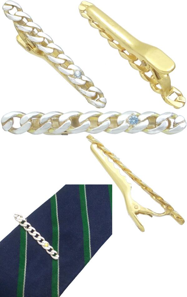 ★燻しの代わりに金の差し色、6面キヘイチェーンに誕生石をセッティングしたシンプルなネクタイピン。
