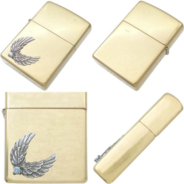 ★2枚の翼が開くウイングモチーフとバースデーストーンのブラスボディジッポ。