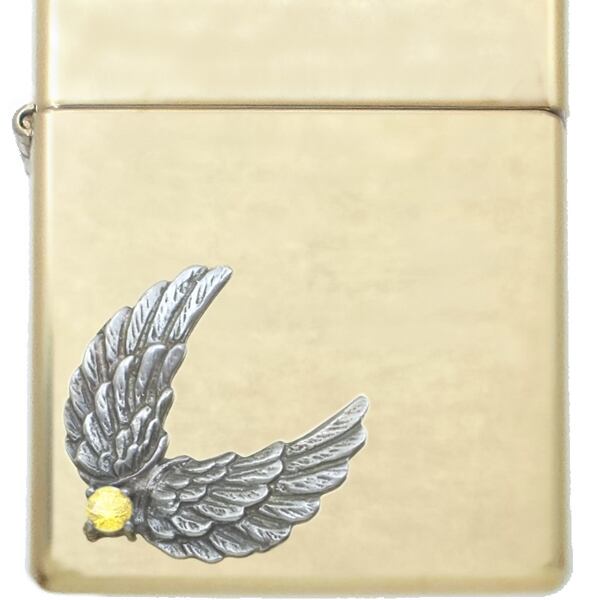 ★2枚の翼が開くウイングモチーフとバースデーストーンのブラスボディジッポ。