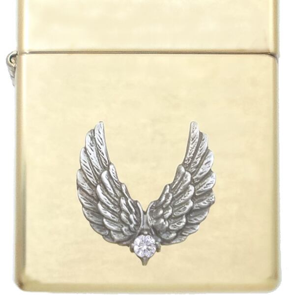 ★2枚の翼が開くウイングモチーフとバースデーストーンのブラスボディジッポ。