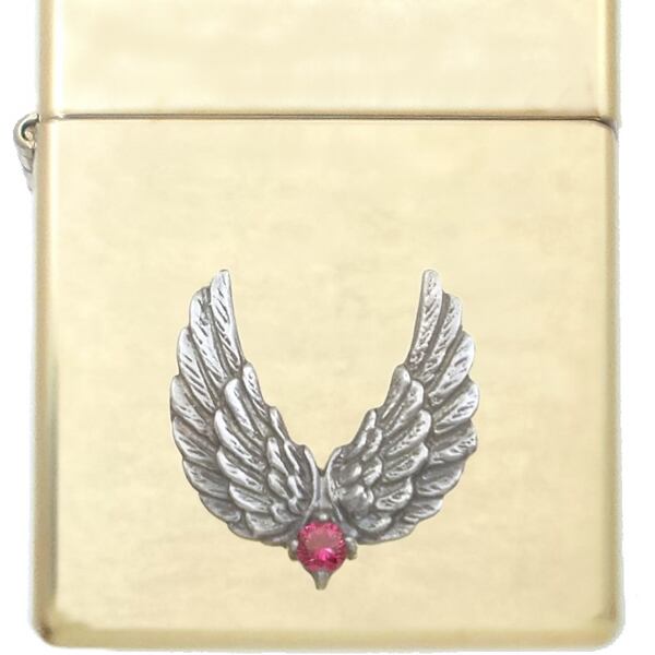 ★2枚の翼が開くウイングモチーフとバースデーストーンのブラスボディジッポ。