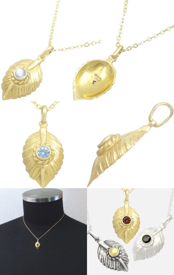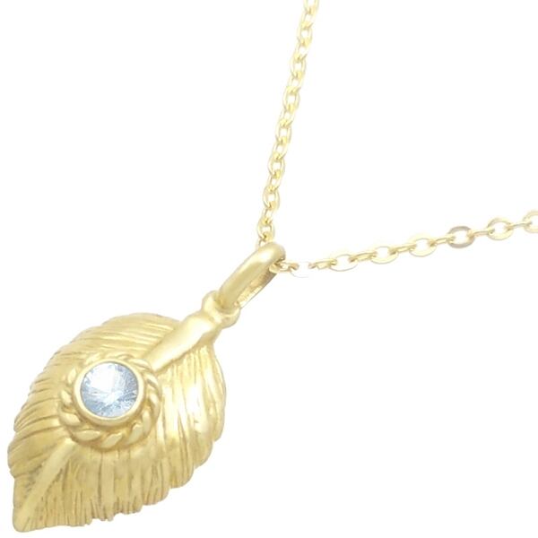 (3月)アクアマリン ゴールドコート ネイディブ ハート フェザー シルバーペンダントネックレス 誕生石*BP-1094