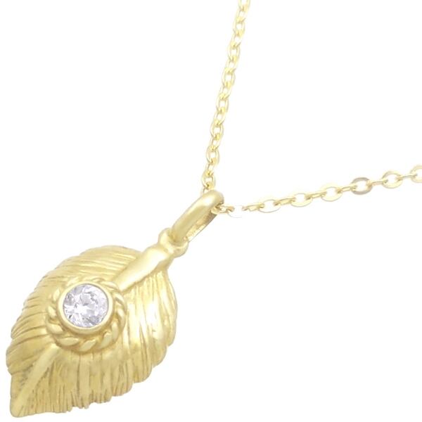★セラミックゴールドの鷲の旨の羽「ハート」とハンドメイドの石枠とコンビのフェザーネックレス。