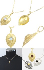 (6月)ブルームーンストーン ゴールドコート ネイディブ ハート フェザー シルバーペンダントネックレス 誕生石*BP-1094