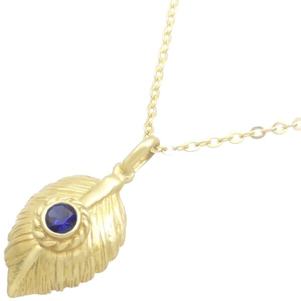 (9月)サファイア ゴールドコート ネイディブ ハート フェザー シルバーペンダントネックレス 誕生石*BP-1094