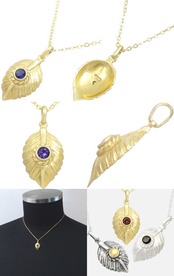 ★セラミックゴールドの鷲の旨の羽「ハート」とハンドメイドの石枠とコンビのフェザーネックレス。