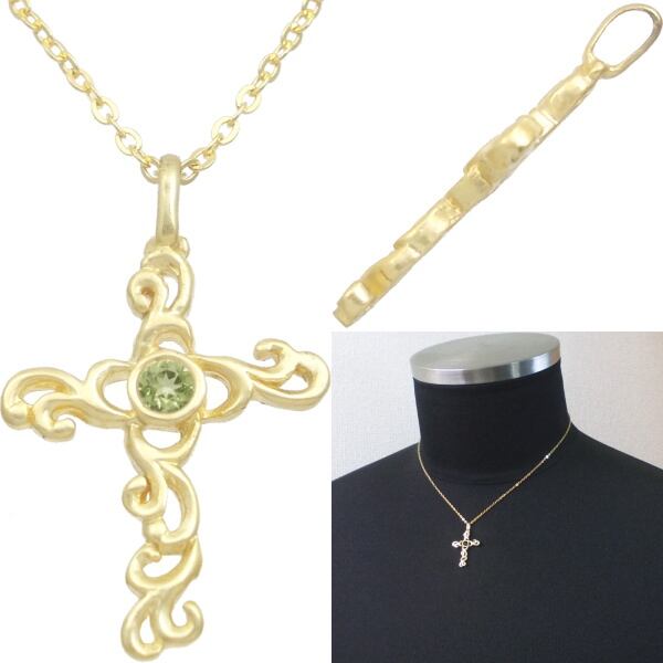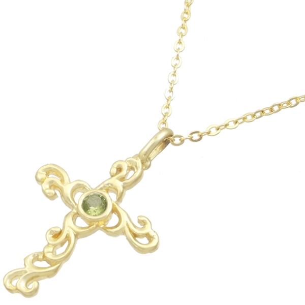 (8月)ペリドット ゴールドコート アラベスク クロス シルバーチャームネックレス 誕生石*BP-1095