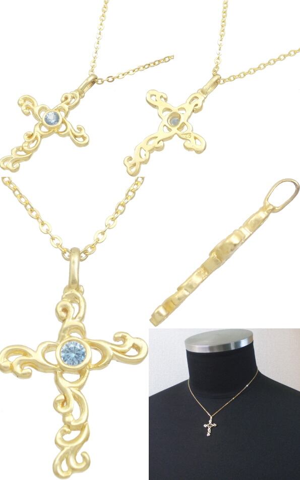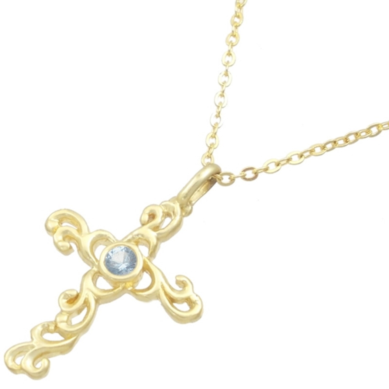 (12月)タンザナイト ゴールドコート アラベスク クロス シルバーチャームネックレス 誕生石*BP-1095