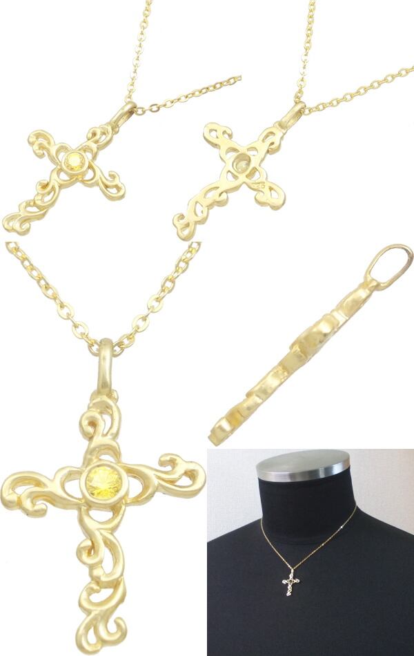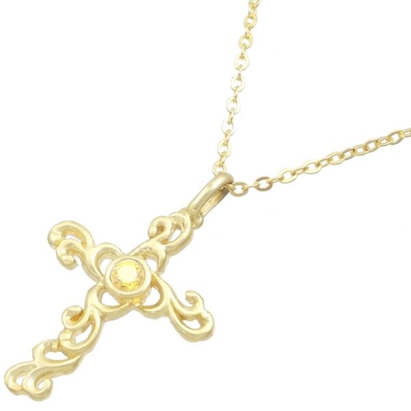イエローCZ ゴールドコート アラベスク クロス シルバーチャームネックレス*BP-1095