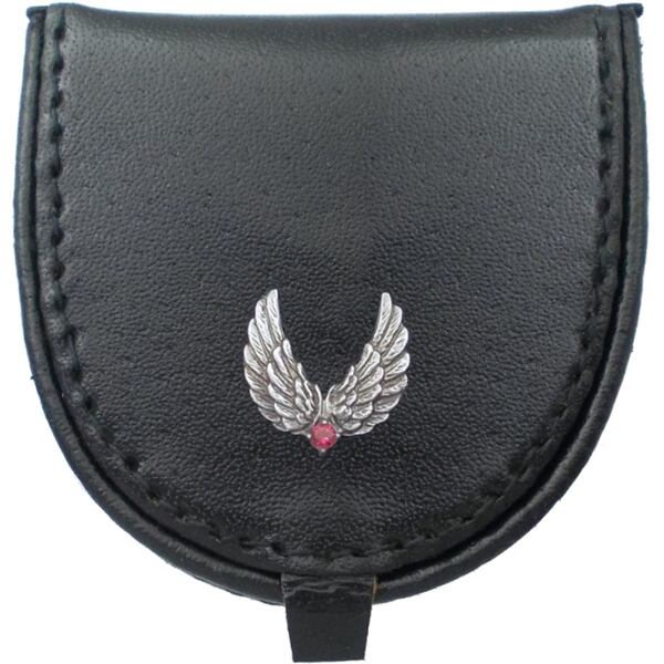 (7月)ルビー ブラック ツイン ウイング レザーコインケース 誕生石*BW-1021