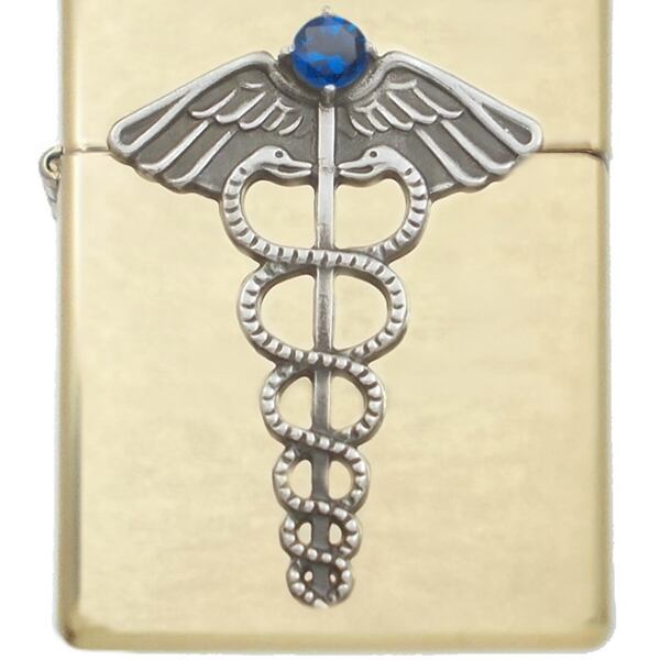 神々の使者として現代においては交通、商業のシンボル、アメリカ軍では医療のシンボル。神話の時をへてなお色褪せいないデザインの杖に5mmの多彩な種類のストーンをセッティングした神々しいジッポ。