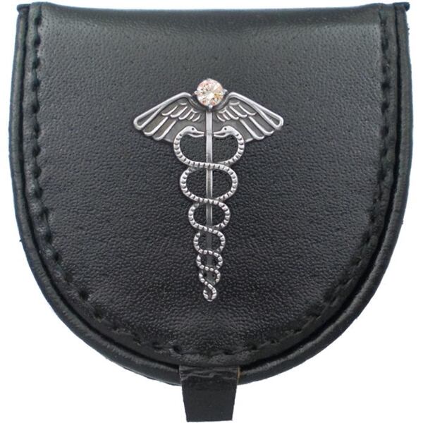 神々の使者として現代においては交通、商業のシンボル、アメリカ軍では医療のシンボル。神話の時をへてなお色褪せいないデザインの杖に5mmの多彩な種類のストーンをセッティングした神々しいコインケース。