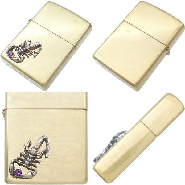 (2月)アメジスト スコーピオン ブラスジッポ 誕生石*BZ-1106