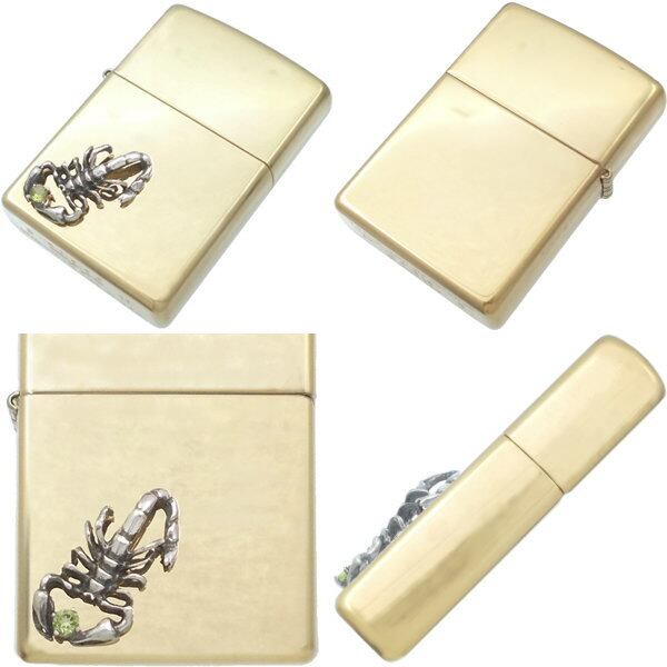 (8月)ペリドット スコーピオン ブラスジッポ 誕生石*BZ-1106