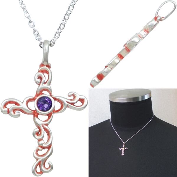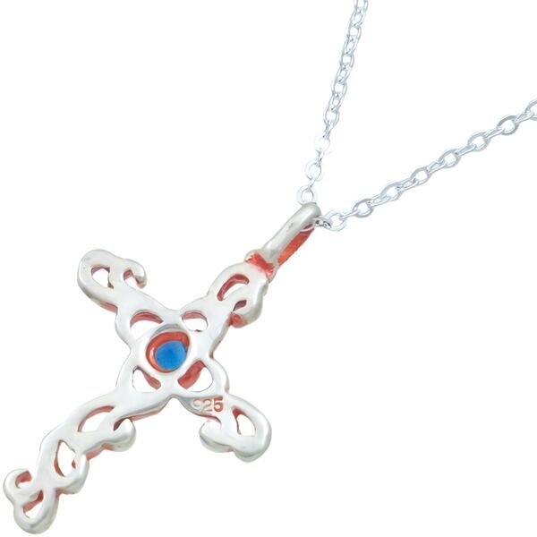 (9月)サファイア レッドコート アラベスク クロス シルバーチャームネックレス 誕生石*BP-1096