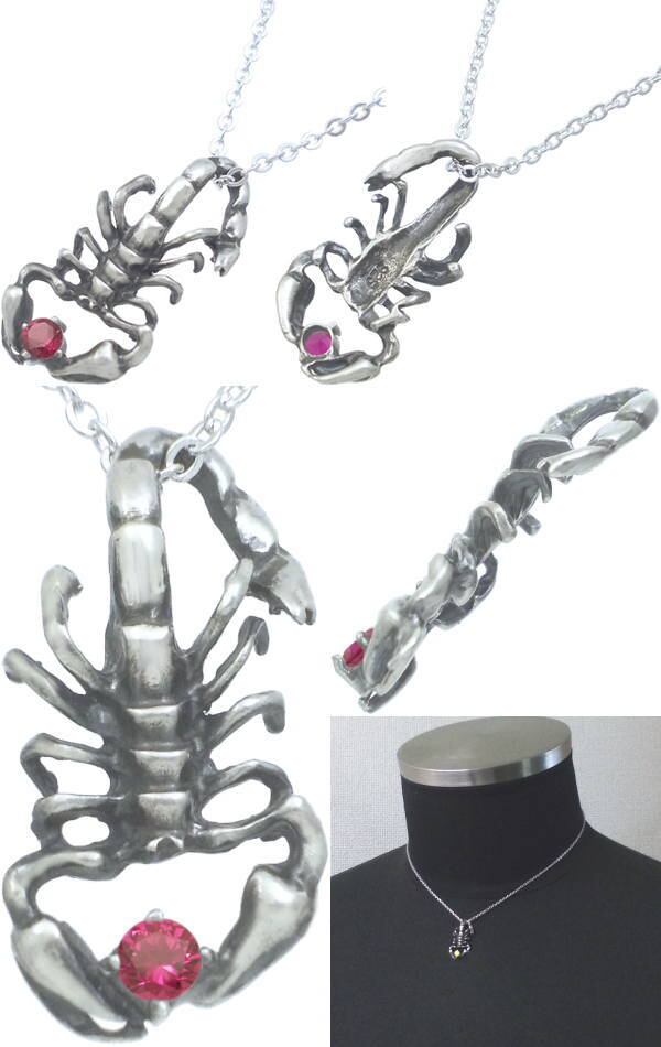 (7月)ルビー スコーピオン シルバーペンダントネックレス 誕生石*BP-1097