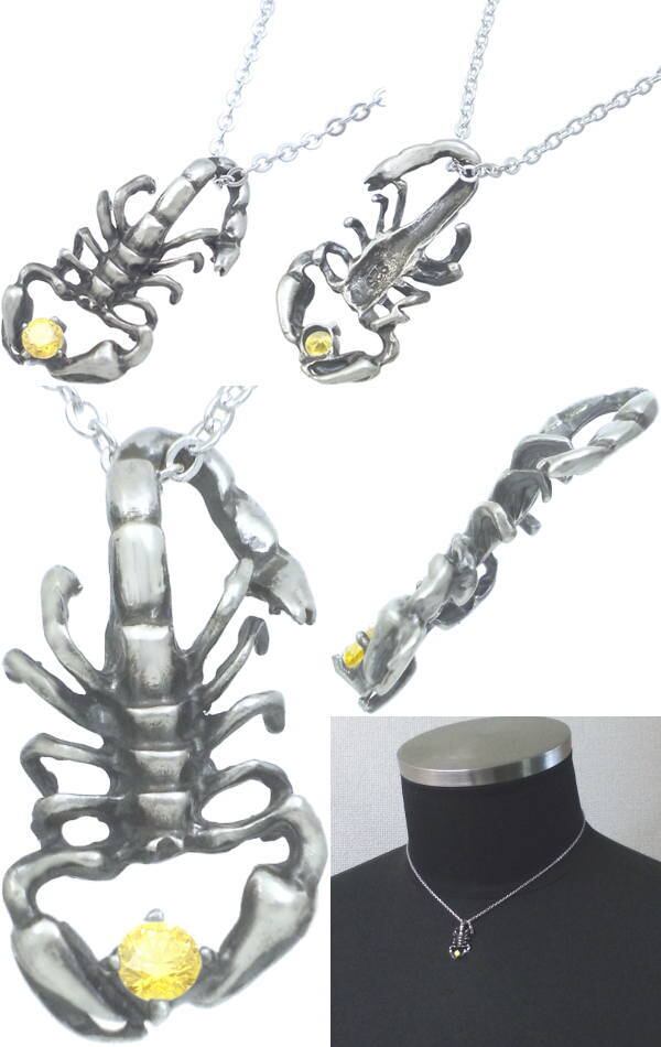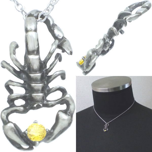 イエローCZ スコーピオン シルバーペンダントネックレス*BP-1097