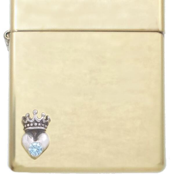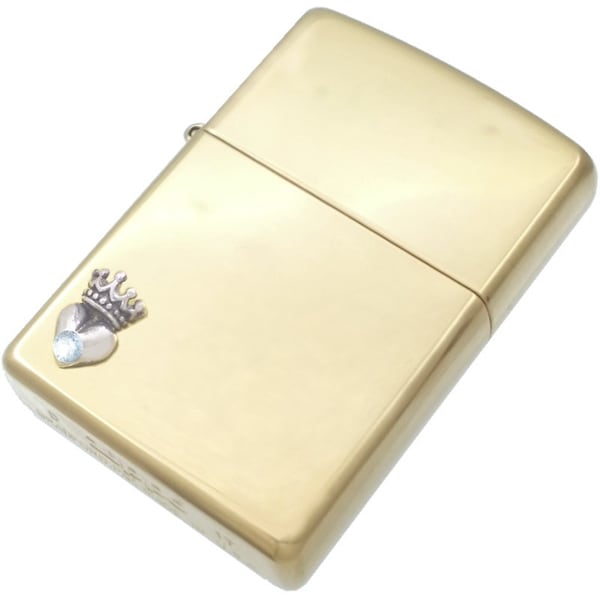 (3月)アクアマリン ブラック タイニー ハートクラウン ブラスジッポ 誕生石*BZ-1112