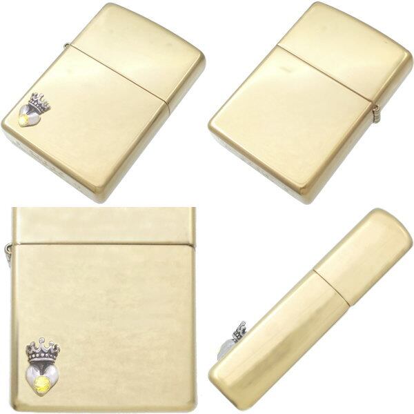イエローCZ ブラック タイニー ハートクラウン ブラスジッポ*BZ-1112