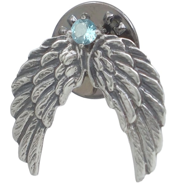 (11月)ブルートパーズ ブラック エンジェル ウイング シルバーピンバッジ ピンズ 誕生石*BK-1150